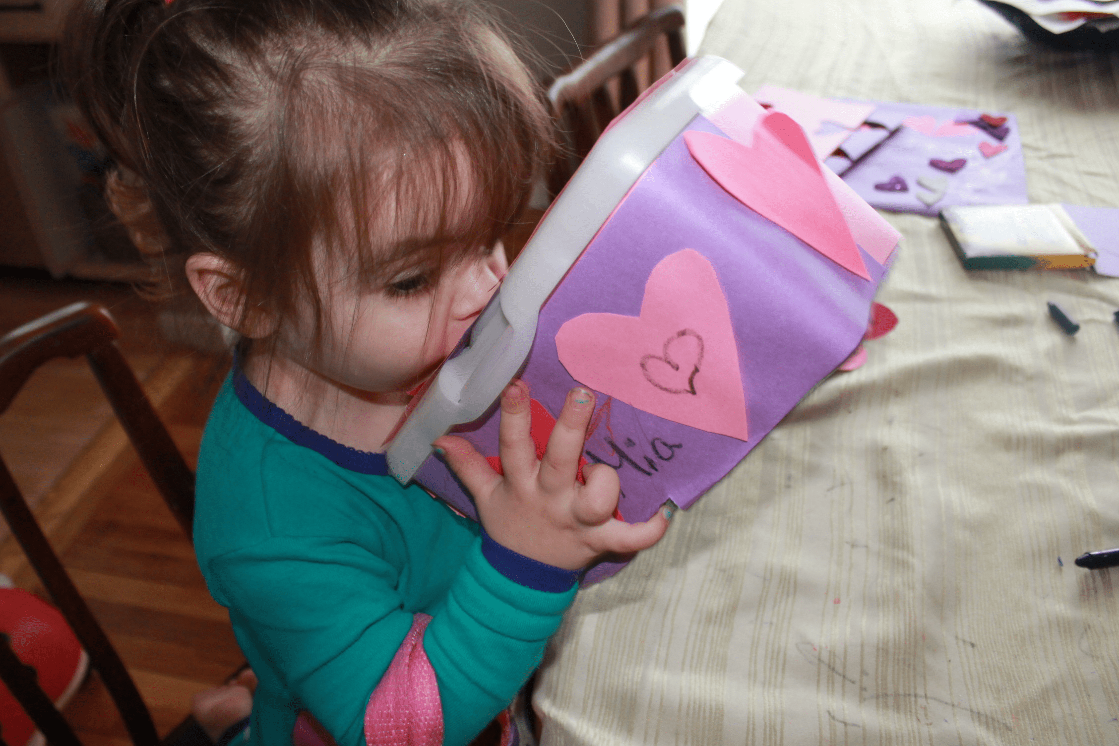 Then decorate the box with hearts and any other decorations to make it personal for your little one.